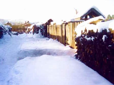山林、冰雪、人家,组成了一幅多么宁静、祥和、美好的画面。徜徉于乡野山林的静谧里,流连于冰河雪海的浪漫中,让我心旷神怡,让我不想离去。